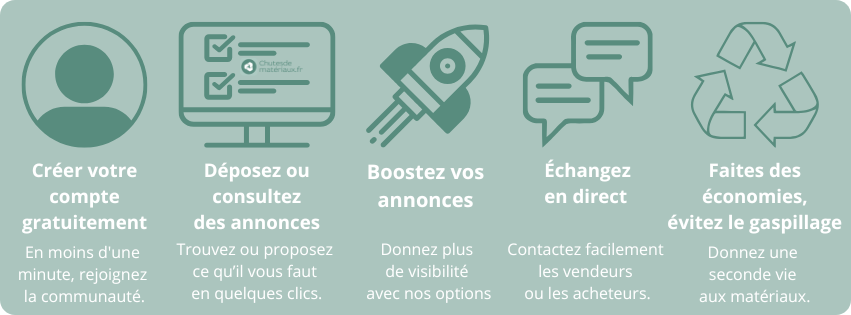 Chutesdemateriaux.fr est une plateforme dédiée aux particuliers et professionnels du bâtiment. Revendez facilement vos surplus de chantier ou trouvez des matériaux à petit prix pour vos projets.